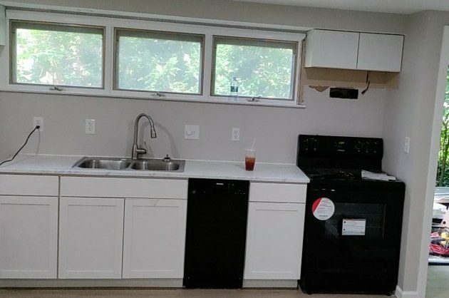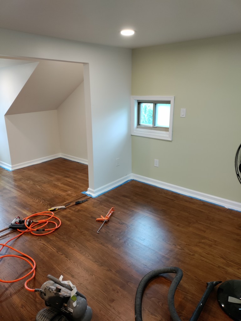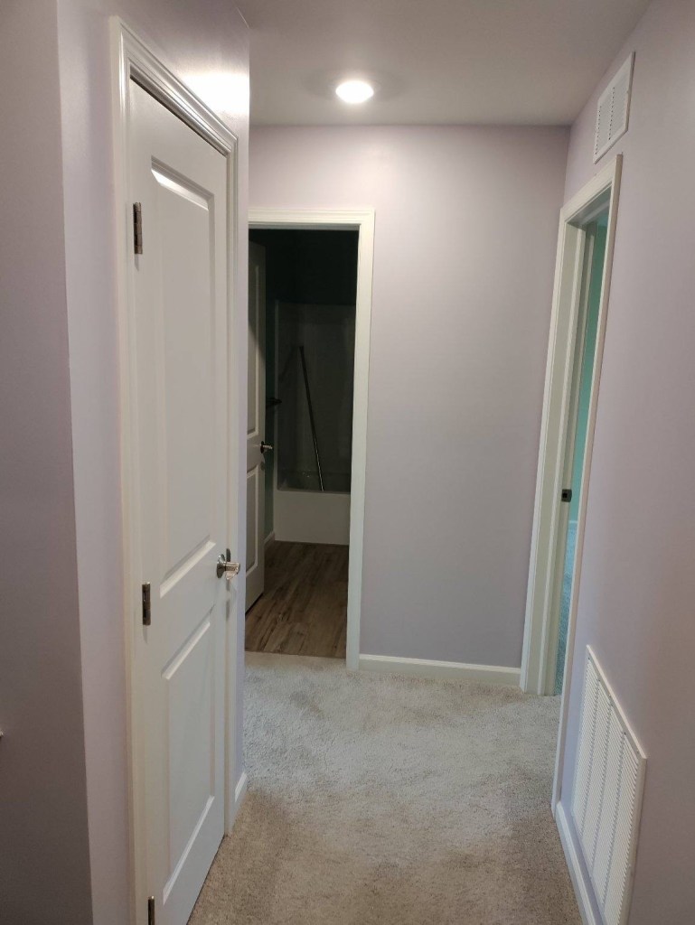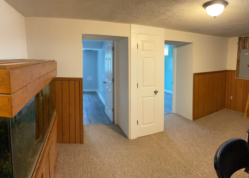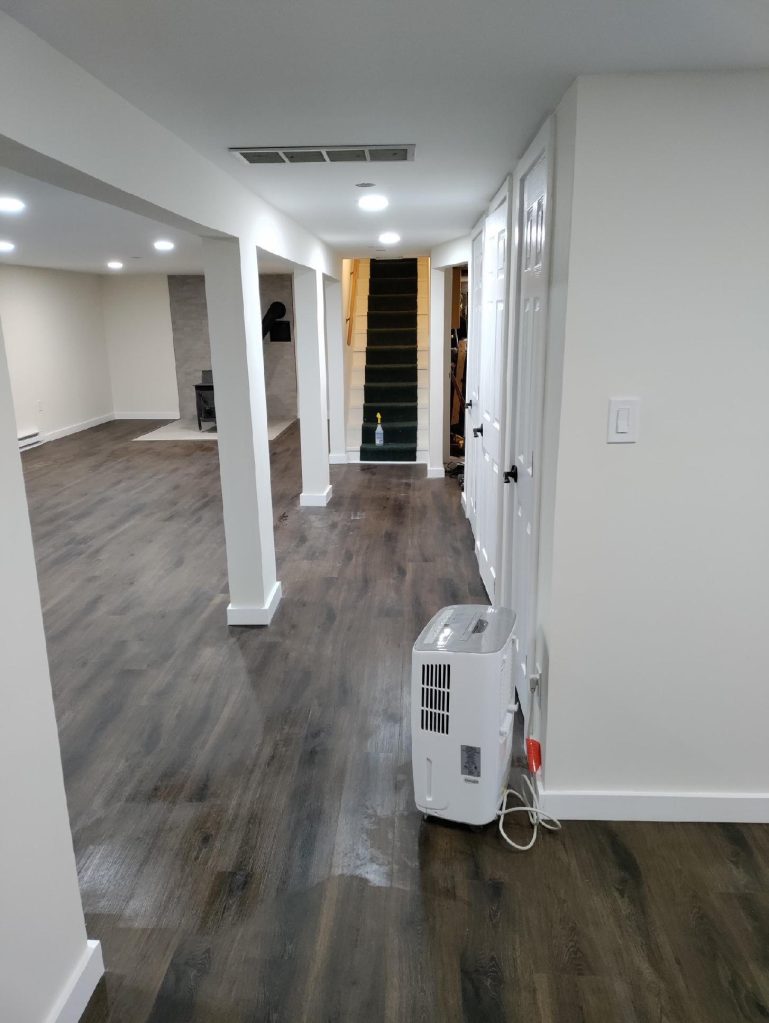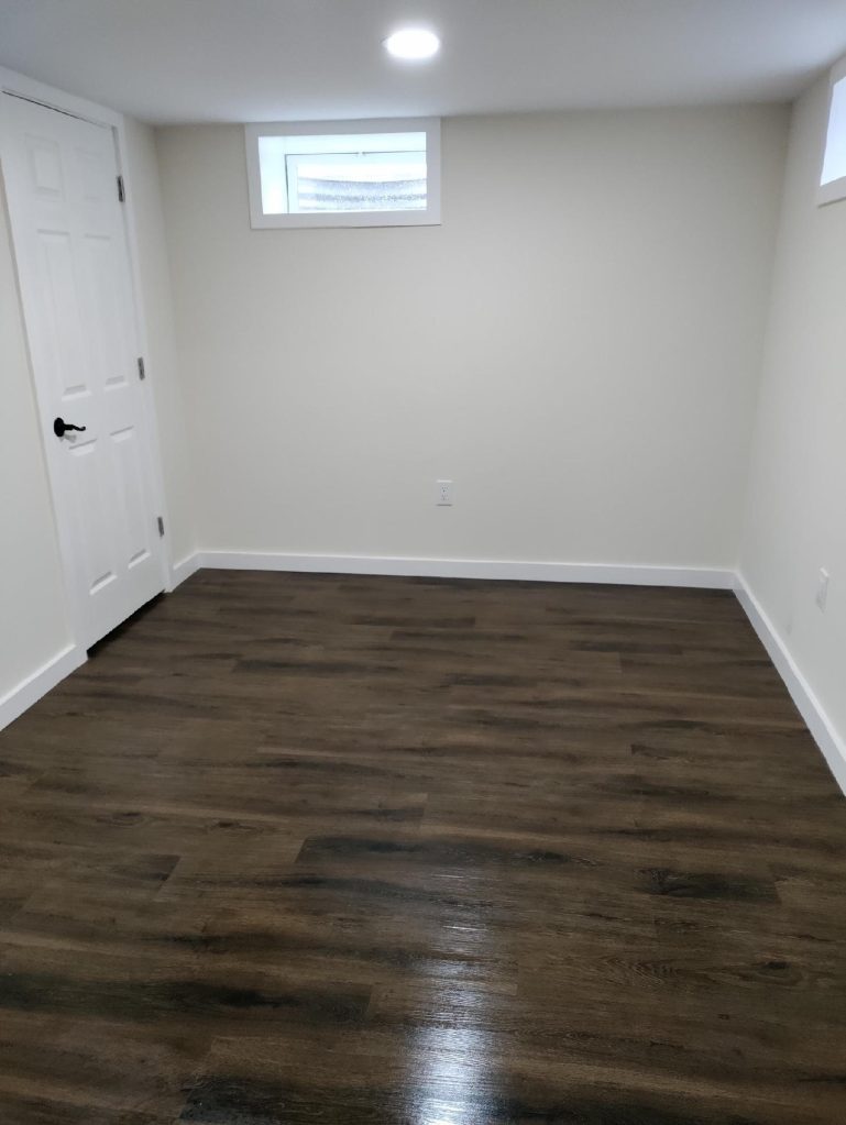 Full basement remodel including paint, trim, and flooring: