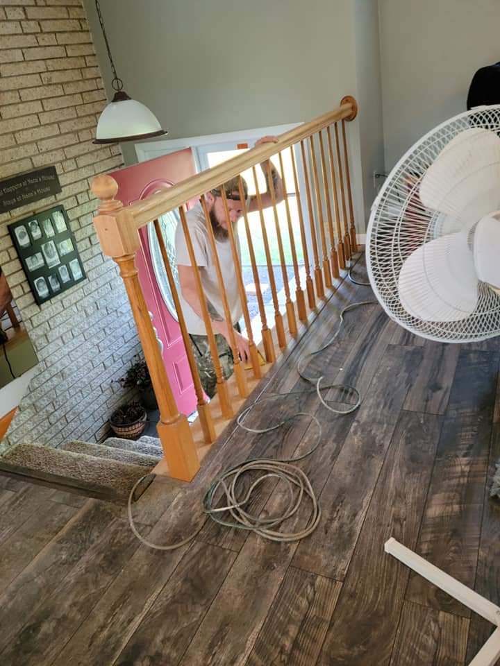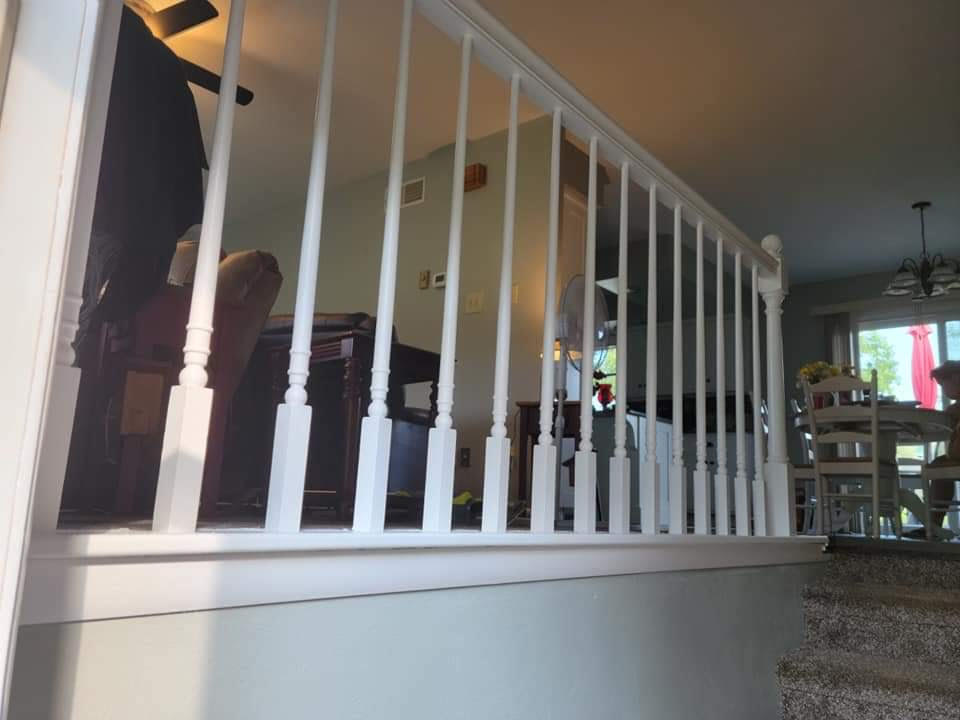 Custom wooden bannister build, install, and prime + paint job:
